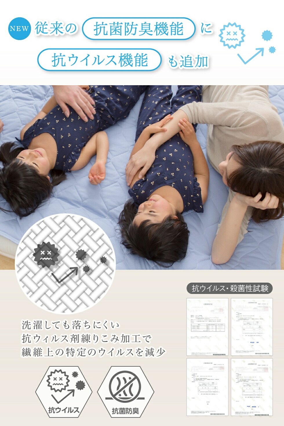 | 材質 | 表地:綿100% 中綿:ポリエステル70% レーヨン30% 裏地:パイル部分 綿100% / グランド部分 ポリエステル100% |