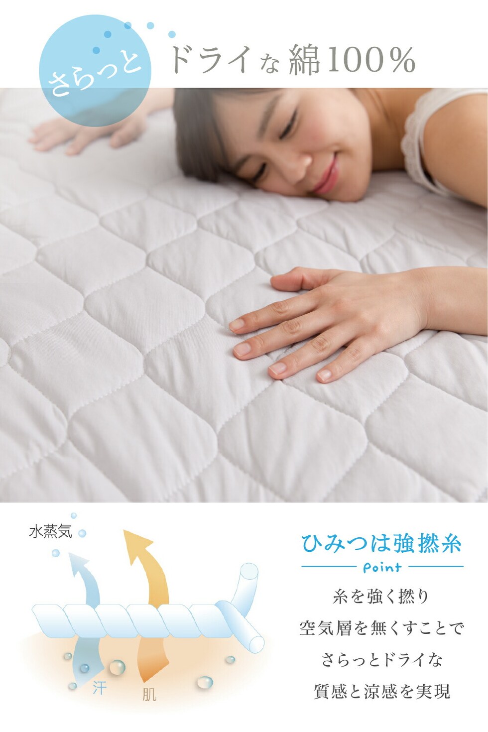 ●ひみつは「強撚糸」糸を強く撚り、空気層を無くすことでさらっとドライな質感と涼感を実現