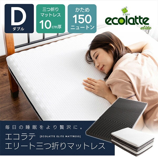 硬め マットレス 三つ折りマットレス 厚さ10cm ダブル 150N ELT-10N-138D ホワイト ベッド 敷布団 敷き布団 3つ折りマットレス 折りたたみ 寝具 床置き 収納 エコラテ エリート ecolatte elite 篠原化学 【送料無料】