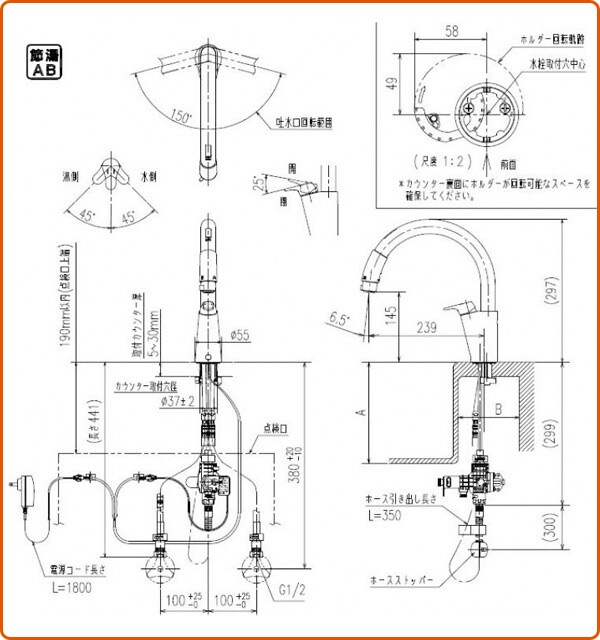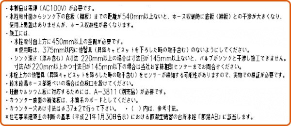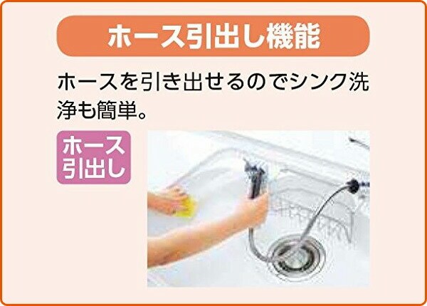 | 商品説明 | ●タッチレススイッチ:吐水口先端のセンサーに手をかざすだけの楽々操作 汚れた手でも触れずに済むので、水栓周りを汚すことがありません また、従来品と比較してタッチレススイッチで容易に止水できるため、約24%の節水・省エネが可能になります ●グースネックスタイル:従来の水栓と比べて懐が深く、シンク内が広々使えます ●水受けタンクレス:従来シンク下に設置していたシャワーホース水受けタンクが不要になるため、収納スペースを有効に使う事ができます ●スポット微細シャワー:優れた洗浄性で水ハネが少ないハンドシャワー付き シャワーの密度が高く、気持ちよく汚れを落とします 従来の整流吐水と比べて、約17%の節水が期待できます シャワーも引き出せるので、シンク洗いにも便利です ●取付穴径:35から39mm ●ホース引出タイプ |