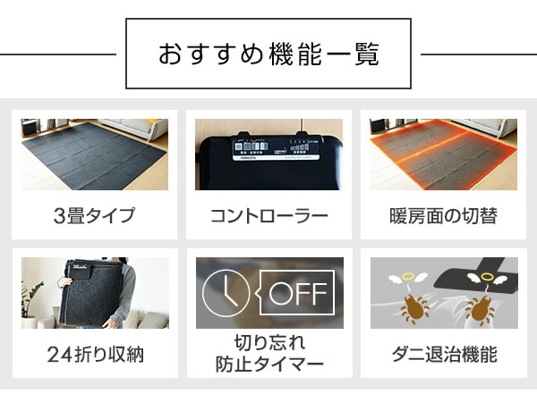 | 商品説明 | ●3畳タイプ ●電源:AC100V (50Hz/60Hz) ●消費電力:600W ●電源コード:約1.2m ●温度調節目盛:5段階 ●切り忘れタイマー:6時間 ●暖房面切替(全面/左面/右面) ●表面温度:(中)約36度(強)約45度 ●消費電力量:(中)280Wh(強)380Wh ●電気代(1時間あたり):(中)約8.7円(強)約11.8円 ※電気料金目安単価31円/kWhを基に算出 ●ダニ対策 ●小さく折りたためてコンパクト収納可(24折り) ●節電モデル 従来品と比較し、最大約23%省エネ(旧品番SUB-302との比較) ※こちらの商品は2024年7月に仕様変更をしております ・本体コントローラー部 ・型番:SUB-302→EUC-301 ・本体サイズ:タテ195cm×ヨコ235cm→タテ185cm×ヨコ230cm ・消費電力:710W→600W |