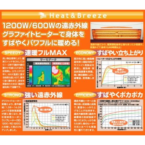 | 商品説明 | ●電源:AC100V(50/60Hz) 12A ●消費電力(50/60Hz):【強運転時】(暖房600W)620/620W、(暖房1200W)1220/1220W、(涼風)20/22W、【弱運転時】(暖房600W)615/615W、(暖房1200W)1215/1215W、(涼風)15/15W ●電気代目安(1時間あたり):【強運転時】(暖房600W)16.7/16.7円、(暖房1200W)32.9/32.9円、(涼風)0.5/0.6円、【弱運転時】(暖房600W)16.6/16.6円、(暖房1200W)32.8/32.8円、(涼風)0.4/0.4円 ●ヒーター方式:グラファイトヒーター ●適応面積目安:1.5坪以下 ●色々な場所に設置できるコンパクト設計で、温度差のバリアフリーを実現する ●遠赤外線グラファイトヒーターで体をすばやくあたためる ●涼風機能付きで、扇風機のような心地よさで夏も爽快 ●人感センサー付きで、人の動きを感知し自動でオン/オフが可能 ●ダブルシロッコ両軸クロスファン方式を採用、コンパクトさと効率を追求 ●ラクラク操作で使いやすい防水仕様のリモコン付き ※商品のみの配送(工事等は行っておりません) |