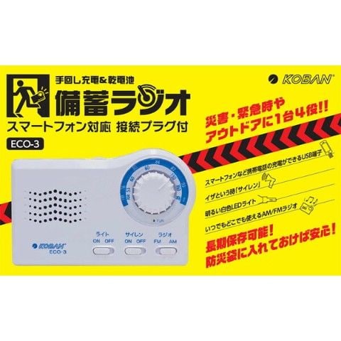手回し充電+乾電池 備蓄ラジオ ECO-3 手回し充電 手巻き充電 手動充電 ラジオ 太知ホールディングス(KOBAN) 【送料無料】