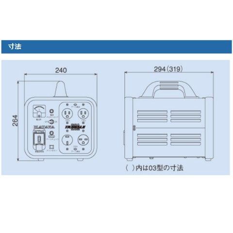 | 商品説明 | ●一次側電圧(入力電圧):100V、200V(自動切換) ●二次側電圧(出力電圧):100V×1、115V×1、200V×1、200V×1 ●二次側出力電流(200/100V出力):1時間 10/20A、連続 8.7/17.4 ●トランス仕様:周波数 50/60Hz、容量 2.0kVA(キロボルトアンペア)、種別 E種絶縁単相・単巻 ●機能:電源パイロットランプ、アースチェックパイロットランプ、過負荷短絡保護兼用型漏電遮断器、接地端子、一次側電線2.1m ●200Vのコンセントしかなくて、100Vの電源が欲しいとき、また逆の場合でも、トランスルがあれば、自由に単相100V・200Vの必要な電源を供給できる |