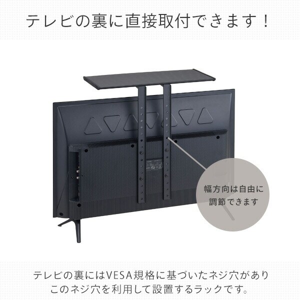 | 商品説明 | ●40-50インチ対応のテレビ上ラック ●テレビの裏に直接簡単取り付け ●耐荷重:3kg |