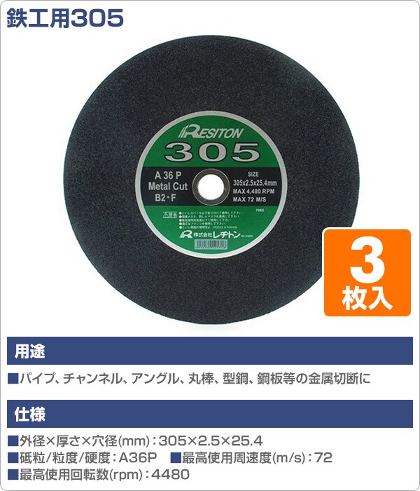 | レヂトン 切断砥石鉄工用305 3枚入り 305×2.5×25.4 A36P |