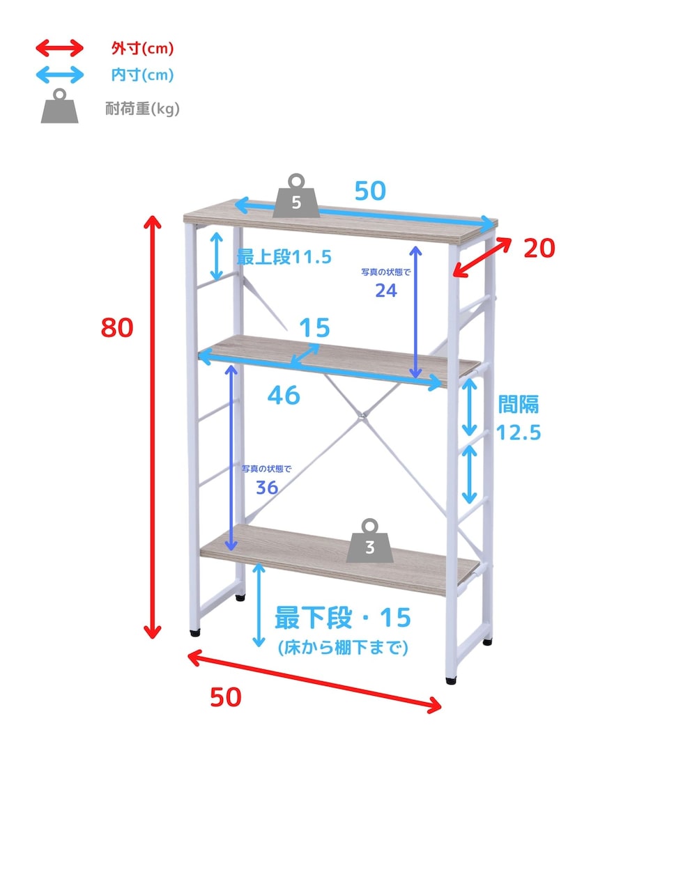 | 本体サイズ | 幅50×奥行20×高さ80cm 重量5kg |