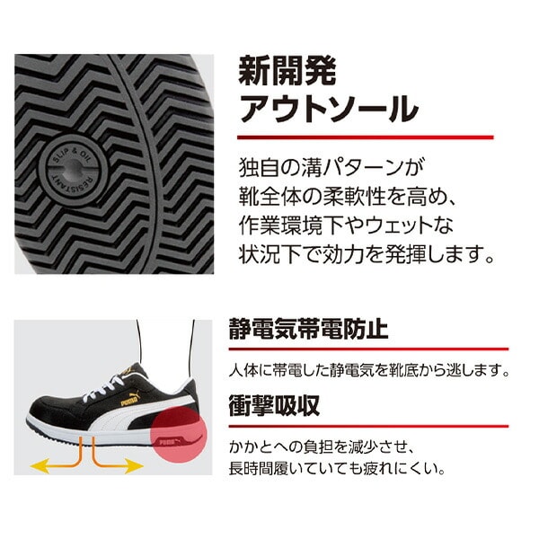 ●セーフティーシューズライン「PUMA SAFETY」は、作業現場できちんと足を保護する高い安全性と、PUMAならではテクノロジーを搭載した快適な履き心地が特徴