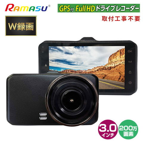 | ラマス RAMASU GPS付ドライブレコーダー ダブルカメラ Full HD 1920×1080 最大約200万画素 RA-DW310G ブラック |