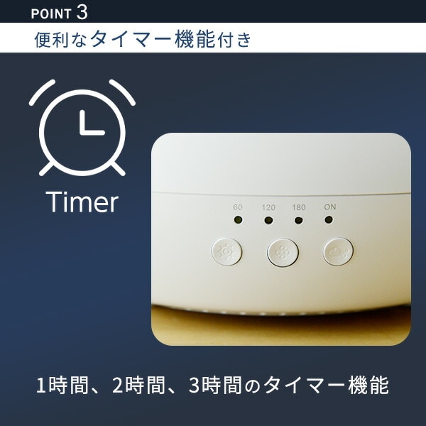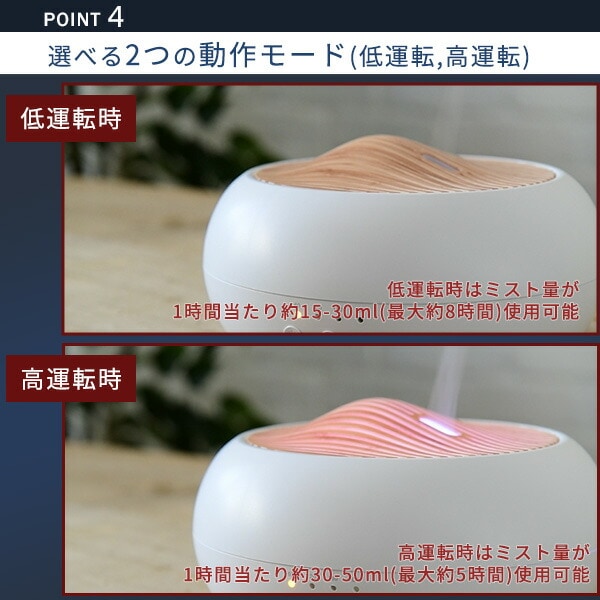 | 商品説明 | ●超音波で水とエッセンシャル(アロマ)オイルやアロマウォーターを瞬時に気化させ、お好みの香りをやさしく広げます ●水がなくなると自動電源オフ(安全機能) ●連続噴射作動モード ●お部屋を雰囲気良く照らす7色のLED ●便利なタイマー機能付き(1/2/3時間オフタイマー) ●電源:AC100-240V/DC 24V・0.5A ●消費電力:約12W ●容量:250ml ●ミスト量:1時間あたり(低運転時)約15-30ml (最大約8時間) (高運転時)約30-50ml (最大約5時間) ●付属品:ACアダプター、計量カップ、取扱説明書 ●お買い上げより1年保証 |