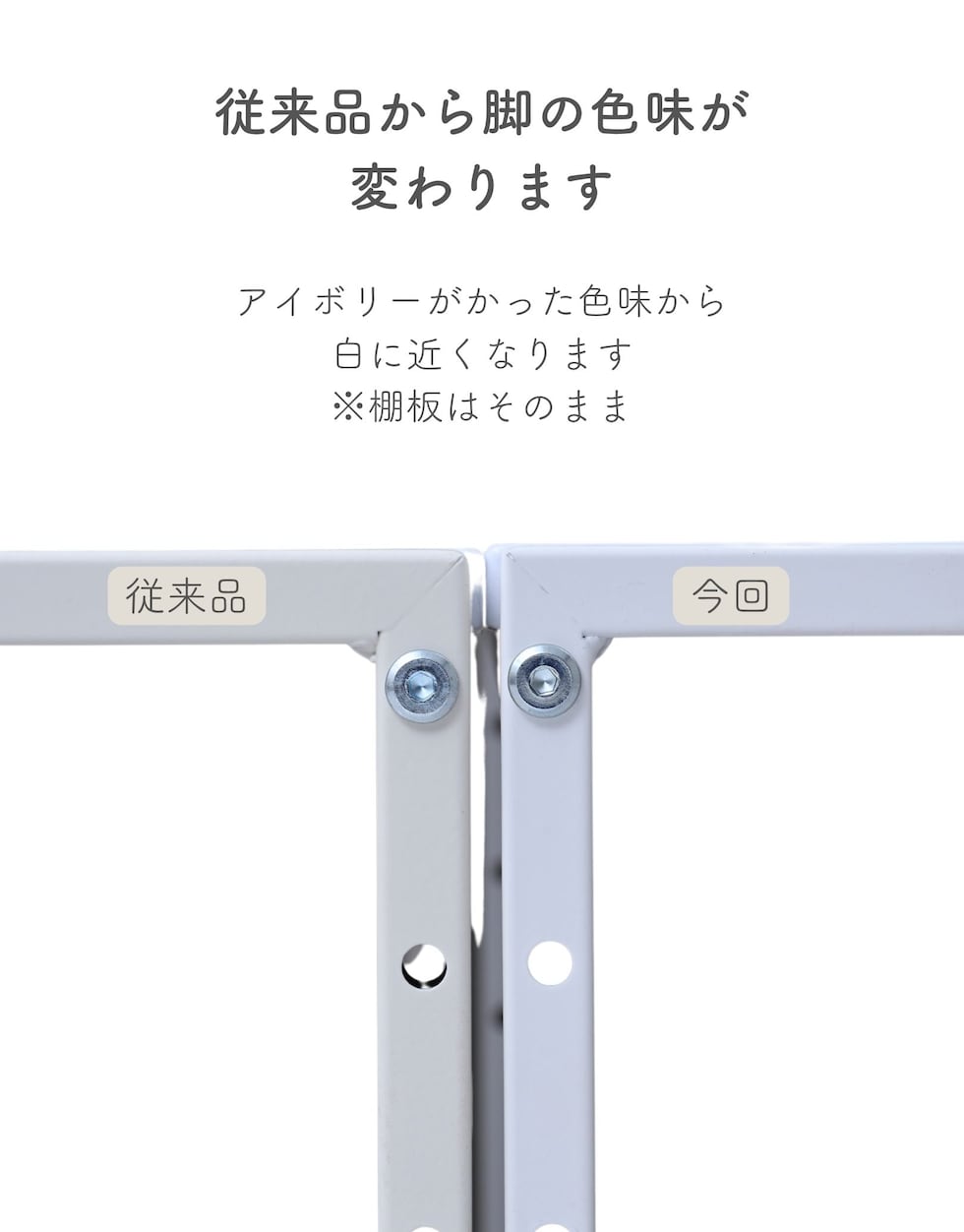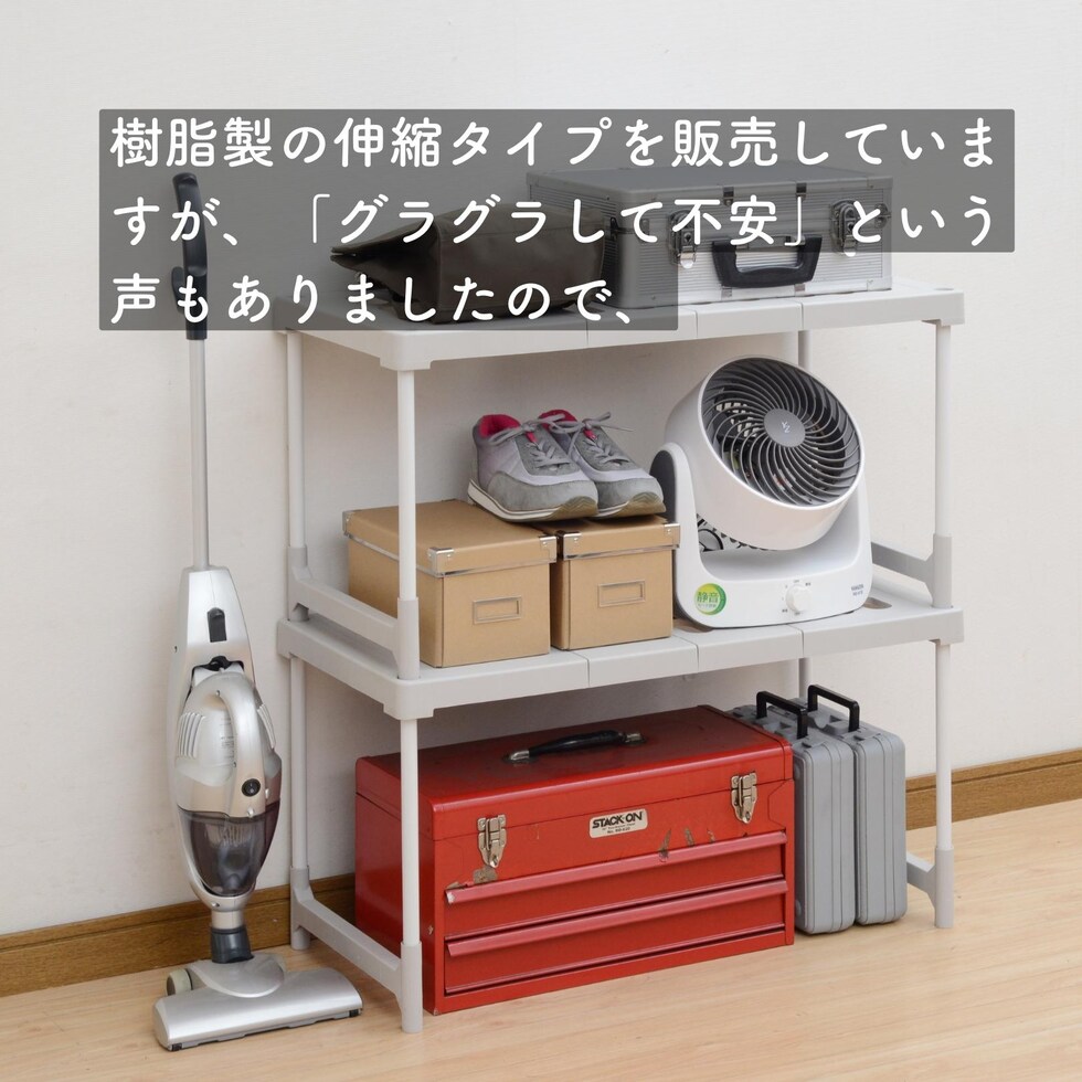 | 材質 | 棚板:合成樹脂化粧繊維板(塩化ビニル樹脂) フレーム:スチール(粉体塗装) |
