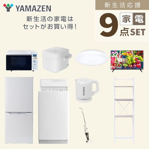 | 山善 YAMAZEN 【新生活応援セット】 家電セット 一人暮らし 新生活家電 9点セット 新品 ( 6kg洗濯機 106L冷蔵庫 オーブンレンジ 炊飯器 シーリングライト 32型液晶テレビ 電気ケトル スティッククリーナー 家電収納ラック ) |