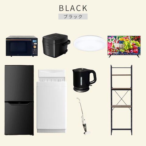 | 商品説明 | 【洗濯機】 ●容量:6.0kg(洗濯時)、1.5kg(風乾燥時) ●8つのコース搭載(標準・毛布・おいそぎ・ドライ・ソフト・つけおき・部屋干し・槽洗浄) 【冷蔵庫】 ●容量:106L(冷蔵室73L/冷凍室33L) ●年間消費電力量:268kWh/年(50Hz/60Hz) 【オーブンレンジ】 ●容量18L、フラットテーブル ●高周波出力:650W(60Hzのみ)/500W/200W相当 【炊飯器】 ●炊飯容量:3.0合炊き ●8種の炊き分けメニュー:省エネ、白米、早炊き、玄米、無洗米、炊込み、おかゆ、温度調理 【シーリングライト】 ●全光束:3600lm ●30分、60分OFFタイマー付き 【32型液晶テレビ】 ●サイズ:32V型 ●2K対応ハイビジョン液晶テレビ 【電気ケトル】 ●容量:1.0L ●空焚き防止機能搭載 【クリーナー】 ●スティック&ハンディの2WAY ●吸込仕事率:40W 【家電収納ラック】 ●棚やコンセントの高さを、モノに合わせて変更可能 ●2口コンセント付き(計1500Wまで)でよく使う家電や雑貨をすっきりひとまとめ ●ラック以外メーカー保証:1年間 |