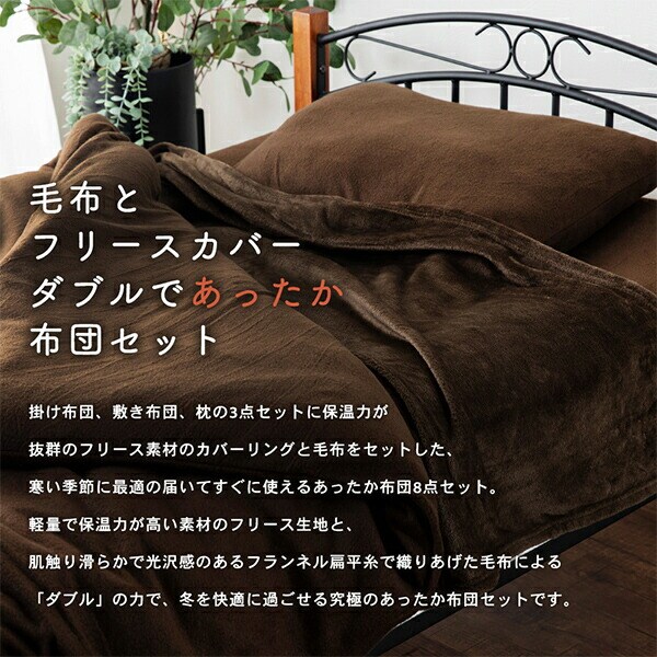 布団セット 8点 シングル あったかセット (掛け布団 敷き布団 枕 各カバー フランネル毛布 収納袋) 組布団 寝具セット 布団 シングルライフ 新生活 おしゃれ ナイスデイ 【送料無料】