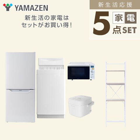 新生活家電セット 5点セット 一人暮らし (6kg洗濯機 106L冷蔵庫 オーブンレンジ 炊飯器 家電収納ラック) ひとり暮らし 単身赴任新 学生 入学 おすすめ 山善 YAMAZEN【送料無料】