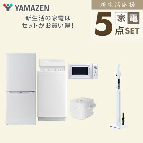 | 山善 YAMAZEN 【新生活応援セット】 家電セット 一人暮らし 新生活家電 5点セット 新品 ( 6kg洗濯機 106L冷蔵庫 電子レンジ 炊飯器 軽量クリーナー ) |