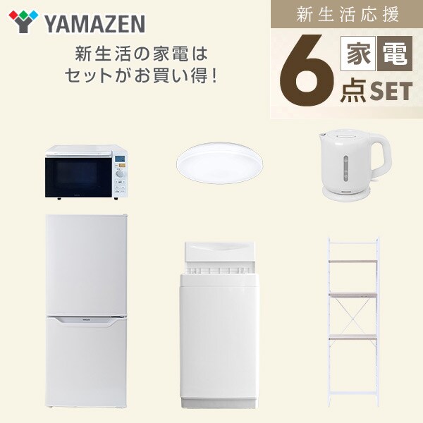 新生活家電セット 6点セット 一人暮らし (6kg洗濯機 106L冷蔵庫 オーブンレンジ シーリングライト 電気ケトル 家電収納ラック) ひとり暮らし 単身赴任新 学生 入学 おすすめ 山善 YAMAZEN【送料無料】