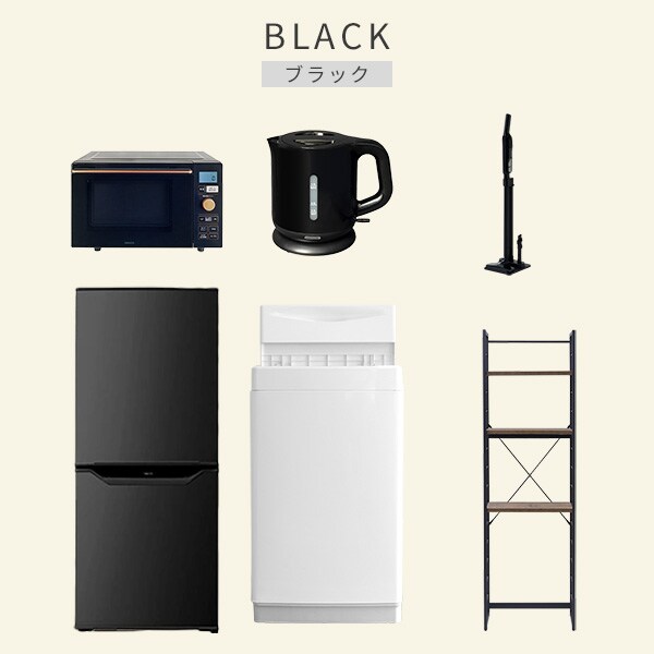 | 商品説明 | 【洗濯機】 ●容量:6.0kg(洗濯時)、1.5kg(風乾燥時) ●8つのコース搭載(標準・毛布・おいそぎ・ドライ・ソフト・つけおき・部屋干し・槽洗浄) 【冷蔵庫】 ●容量:106L(冷蔵室73L/冷凍室33L) ●年間消費電力量:268kWh/年(50Hz/60Hz) 【オーブンレンジ】 ●容量18L、フラットテーブル ●高周波出力:650W(60Hzのみ)/500W/200W相当 【電気ケトル】 ●容量:1.0L ●空焚き防止機能搭載 【軽量クリーナー】 ●わずか820gの軽量クリーナー ●連続使用時間:(強)約10分、(標準)約25分 【家電収納ラック】 ●棚やコンセントの高さを、モノに合わせて変更可能 ●2口コンセント付き(計1500Wまで)でよく使う家電や雑貨をすっきりひとまとめ ●ラック以外メーカー保証:1年間 |