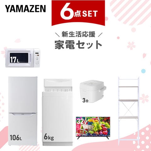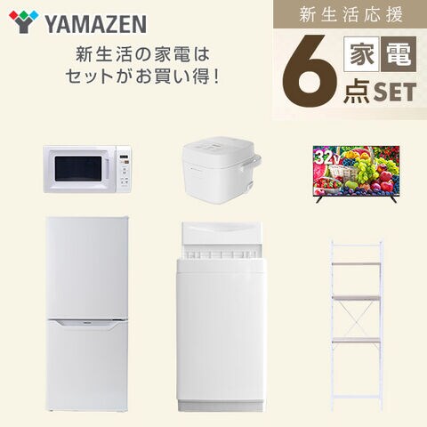 新生活家電セット 6点セット 一人暮らし (6kg洗濯機 106L冷蔵庫 電子レンジ 炊飯器 32型液晶テレビ 家電収納ラック) ひとり暮らし 単身赴任新 学生 入学 おすすめ 山善 YAMAZEN【送料無料】