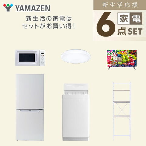 新生活家電セット 6点セット 一人暮らし (6kg洗濯機 106L冷蔵庫 電子レンジ シーリングライト 32型液晶テレビ 家電収納ラック) ひとり暮らし 単身赴任新 学生 入学 おすすめ 山善 YAMAZEN【送料無料】