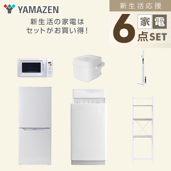 新生活家電セット 6点セット 一人暮らし (6kg洗濯機 106L冷蔵庫 電子レンジ 炊飯器 軽量クリーナー 家電収納ラック) ひとり暮らし 単身赴任新 学生 入学 おすすめ 山善 YAMAZEN【送料無料】