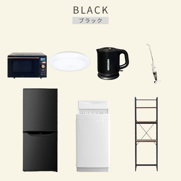| 商品説明 | 【洗濯機】 ●容量:6.0kg(洗濯時)、1.5kg(風乾燥時) ●8つのコース搭載(標準・毛布・おいそぎ・ドライ・ソフト・つけおき・部屋干し・槽洗浄) 【冷蔵庫】 ●容量:106L(冷蔵室73L/冷凍室33L) ●年間消費電力量:268kWh/年(50Hz/60Hz) 【オーブンレンジ】 ●容量18L、フラットテーブル ●高周波出力:650W(60Hzのみ)/500W/200W相当 【シーリングライト】 ●全光束:3600lm ●30分、60分OFFタイマー付き 【電気ケトル】 ●容量:1.0L ●空焚き防止機能搭載 【クリーナー】 ●スティック&ハンディの2WAY ●吸込仕事率:40W 【家電収納ラック】 ●棚やコンセントの高さを、モノに合わせて変更可能 ●2口コンセント付き(計1500Wまで)でよく使う家電や雑貨をすっきりひとまとめ ●ラック以外メーカー保証:1年間 |