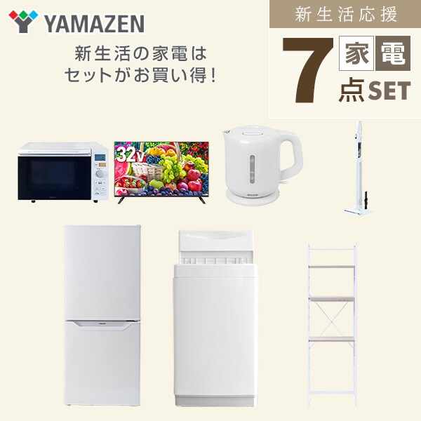 新生活家電セット 7点セット 一人暮らし (6kg洗濯機 106L冷蔵庫 オーブンレンジ 32型液晶テレビ 電気ケトル 軽量クリーナー 家電収納ラック) ひとり暮らし 単身赴任新 学生 入学 おすすめ 山善 YAMAZEN【送料無料】