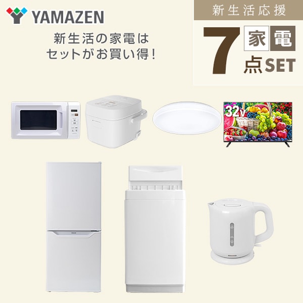 【新生活応援セット】 家電セット 一人暮らし 新生活家電 7点セット 新品 (6kg洗濯機 106L冷蔵庫 電子レンジ 炊飯器 シーリングライト 32型液晶テレビ 電気ケトル) 一人暮らし 1人暮らし 単身 単身赴任 家電セット 新生活 山善 YAMAZEN 【送料無料】