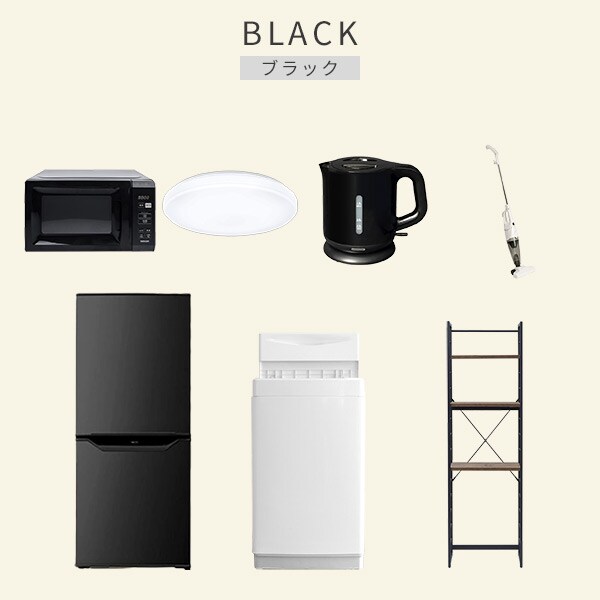 | 商品説明 | 【洗濯機】 ●容量:6.0kg(洗濯時)、1.5kg(風乾燥時) ●8つのコース搭載(標準・毛布・おいそぎ・ドライ・ソフト・つけおき・部屋干し・槽洗浄) 【冷蔵庫】 ●容量:106L(冷蔵室73L/冷凍室33L) ●年間消費電力量:268kWh/年(50Hz/60Hz) 【電子レンジ】 ●容量17L、ターンテーブル ●高周波出力:50Hz(500W、200W相当)、60Hz(650W、500W、200W相当) 【シーリングライト】 ●全光束:3600lm ●30分、60分OFFタイマー付き 【電気ケトル】 ●容量:1.0L ●空焚き防止機能搭載 【クリーナー】 ●スティック&ハンディの2WAY ●吸込仕事率:40W 【家電収納ラック】 ●棚やコンセントの高さを、モノに合わせて変更可能 ●2口コンセント付き(計1500Wまで)でよく使う家電や雑貨をすっきりひとまとめ ●ラック以外メーカー保証:1年間 ※2023年4月より電子レンジがヘルツフリーの機種に変更になっています。 |