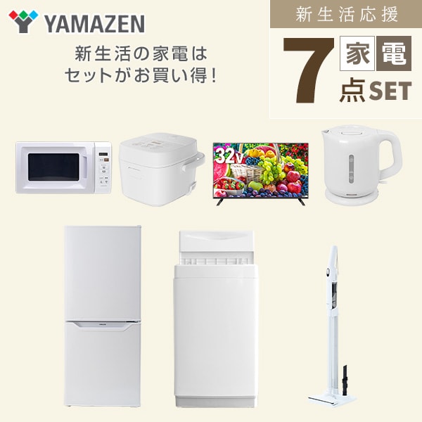 【新生活応援セット】 家電セット 一人暮らし 新生活家電 7点セット 新品 (6kg洗濯機 106L冷蔵庫 電子レンジ 炊飯器 32型液晶テレビ 電気ケトル 軽量クリーナー) 一人暮らし 1人暮らし 単身 単身赴任新生活 大学入学 山善 YAMAZEN 【送料無料】