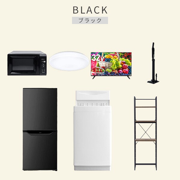 【新生活応援セット】 家電セット 一人暮らし 新生活家電 7点セット 新品 ( 6kg洗濯機 106L冷蔵庫 電子レンジ シーリングライト 32型液晶テレビ 軽量クリーナー 家電収納ラック )