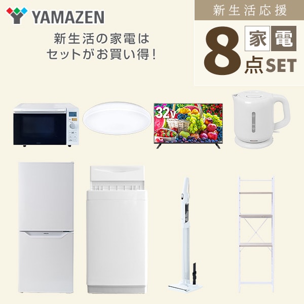 | 山善 YAMAZEN 【新生活応援セット】 家電セット 一人暮らし 新生活家電 8点セット 新品 ( 6kg洗濯機 106L冷蔵庫 オーブンレンジ シーリングライト 32型液晶テレビ 電気ケトル 軽量クリーナー 家電収納ラック ) |