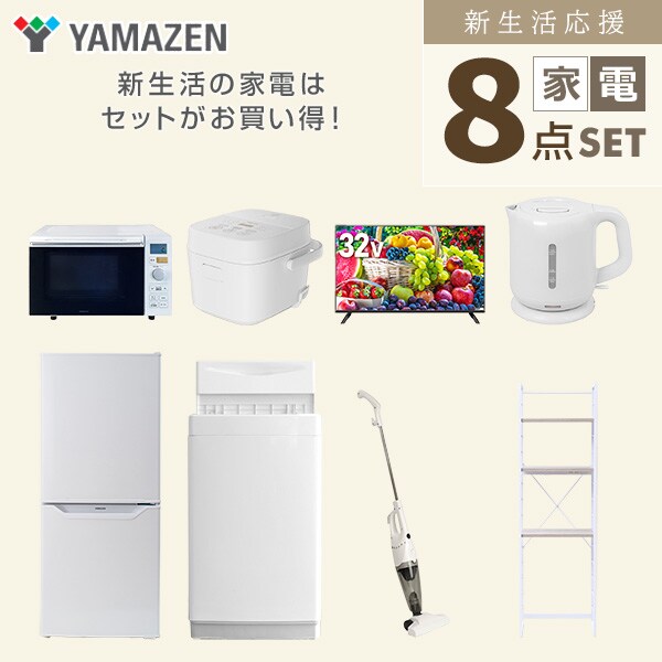 | 山善 YAMAZEN 【新生活応援セット】 家電セット 一人暮らし 新生活家電 8点セット 新品 ( 6kg洗濯機 106L冷蔵庫 オーブンレンジ 炊飯器 32型液晶テレビ 電気ケトル スティッククリーナー 家電収納ラック ) |