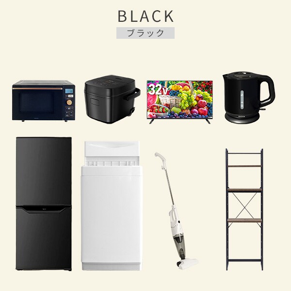 | 商品説明 | 【洗濯機】 ●容量:6.0kg(洗濯時)、1.5kg(風乾燥時) ●8つのコース搭載(標準・毛布・おいそぎ・ドライ・ソフト・つけおき・部屋干し・槽洗浄) 【冷蔵庫】 ●容量:106L(冷蔵室73L/冷凍室33L) ●年間消費電力量:268kWh/年(50Hz/60Hz) 【オーブンレンジ】 ●容量18L、フラットテーブル ●高周波出力:650W(60Hzのみ)/500W/200W相当 【炊飯器】 ●炊飯容量:3.0合炊き ●8種の炊き分けメニュー:省エネ、白米、早炊き、玄米、無洗米、炊込み、おかゆ、温度調理 【32型液晶テレビ】 ●サイズ:32V型 ●2K対応ハイビジョン液晶テレビ 【電気ケトル】 ●容量:1.0L ●空焚き防止機能搭載 【クリーナー】 ●スティック&ハンディの2WAY ●吸込仕事率:40W 【家電収納ラック】 ●棚やコンセントの高さを、モノに合わせて変更可能 ●2口コンセント付き(計1500Wまで)でよく使う家電や雑貨をすっきりひとまとめ ●ラック以外メーカー保証:1年間 ※2023年4月より炊飯器の型番を YJR-M05からYJR-DM051へ変更しています。 |