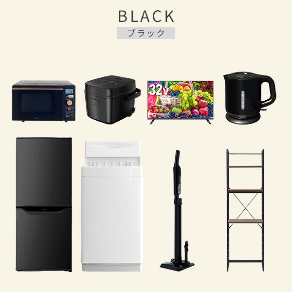 | 商品説明 | 【洗濯機】 ●容量:6.0kg(洗濯時)、1.5kg(風乾燥時) ●8つのコース搭載(標準・毛布・おいそぎ・ドライ・ソフト・つけおき・部屋干し・槽洗浄) 【冷蔵庫】 ●容量:106L(冷蔵室73L/冷凍室33L) ●年間消費電力量:268kWh/年(50Hz/60Hz) 【オーブンレンジ】 ●容量18L、フラットテーブル ●高周波出力:650W(60Hzのみ)/500W/200W相当 【炊飯器】 ●炊飯容量:3.0合炊き ●8種の炊き分けメニュー:省エネ、白米、早炊き、玄米、無洗米、炊込み、おかゆ、温度調理 【32型液晶テレビ】 ●サイズ:32V型 ●2K対応ハイビジョン液晶テレビ 【電気ケトル】 ●容量:1.0L ●空焚き防止機能搭載 【軽量クリーナー】 ●わずか820gの軽量クリーナー ●連続使用時間:(強)約10分、(標準)約25分 【家電収納ラック】 ●棚やコンセントの高さを、モノに合わせて変更可能 ●2口コンセント付き(計1500Wまで)でよく使う家電や雑貨をすっきりひとまとめ ●ラック以外メーカー保証:1年間 ※2023年4月より炊飯器の型番を YJR-M05からYJR-DM051へ変更しています。 |