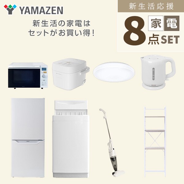 | 山善 YAMAZEN 【新生活応援セット】 家電セット 一人暮らし 新生活家電 8点セット 新品 ( 6kg洗濯機 106L冷蔵庫 オーブンレンジ 炊飯器 シーリングライト 電気ケトル スティッククリーナー 家電収納ラック ) |