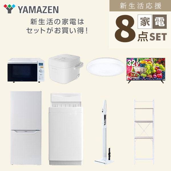 新生活家電セット 8点セット 一人暮らし (6kg洗濯機 106L冷蔵庫 オーブンレンジ 炊飯器 シーリングライト 32型液晶テレビ 軽量クリーナー 家電収納ラック) ひとり暮らし 単身赴任新 学生 入学 おすすめ 山善 YAMAZEN【送料無料】