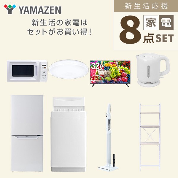 新生活家電セット 8点セット 一人暮らし (6kg洗濯機 106L冷蔵庫 電子レンジ シーリングライト 32型液晶テレビ 電気ケトル 軽量クリーナー 家電収納ラック) ひとり暮らし 単身赴任新 学生 入学 おすすめ 山善 YAMAZEN【送料無料】