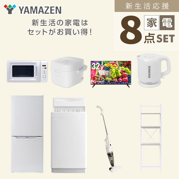| 山善 YAMAZEN 【新生活応援セット】 家電セット 一人暮らし 新生活家電 8点セット 新品 ( 6kg洗濯機 106L冷蔵庫 電子レンジ 炊飯器 32型液晶テレビ 電気ケトル スティッククリーナー 家電収納ラック ) |