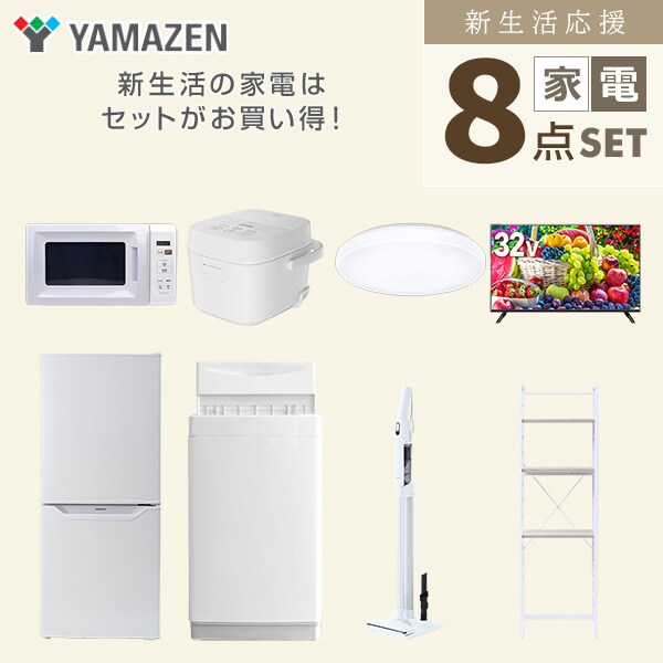 新生活家電セット 8点セット 一人暮らし (6kg洗濯機 106L冷蔵庫 電子レンジ 炊飯器 シーリングライト 32型液晶テレビ 軽量クリーナー 家電収納ラック) ひとり暮らし 単身赴任新 学生 入学 おすすめ 山善 YAMAZEN【送料無料】