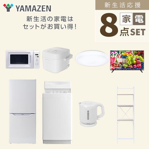 | 山善 YAMAZEN 【新生活応援セット】 家電セット 一人暮らし 新生活家電 8点セット 新品 ( 6kg洗濯機 106L冷蔵庫 電子レンジ 炊飯器 シーリングライト 32型液晶テレビ 電気ケトル 家電収納ラック ) |
