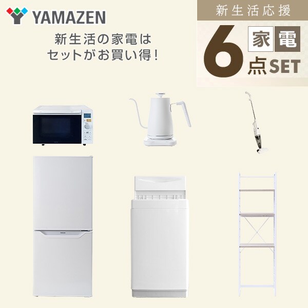 新生活家電セット 6点セット 一人暮らし (6kg洗濯機 106L冷蔵庫 オーブンレンジ 温調ケトル スティッククリーナー 家電収納ラック) ひとり暮らし 単身赴任新 学生 入学 おすすめ 山善 YAMAZEN【送料無料】