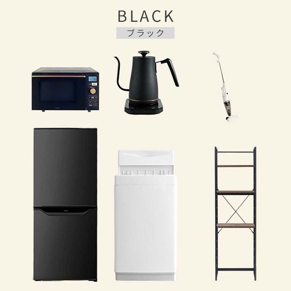 | 商品説明 | 【洗濯機】 ●容量:6.0kg(洗濯時)、1.5kg(風乾燥時) ●8つのコース搭載(標準・毛布・おいそぎ・ドライ・ソフト・つけおき・部屋干し・槽洗浄) 【冷蔵庫】 ●容量:106L(冷蔵室73L/冷凍室33L) ●年間消費電力量:268kWh/年(50Hz/60Hz) 【オーブンレンジ】 ●容量18L、フラットテーブル ●高周波出力:650W(60Hzのみ)/500W/200W相当 【電気温調ケトル】 ●容量:800ml ●温度設定範囲:60-100度の間で1度単位で温度調整可能 【クリーナー】 ●スティック&ハンディの2WAY ●吸込仕事率:40W 【家電収納ラック】 ●棚やコンセントの高さを、モノに合わせて変更可能 ●2口コンセント付き(計1500Wまで)でよく使う家電や雑貨をすっきりひとまとめ ●ラック以外メーカー保証:1年間 |