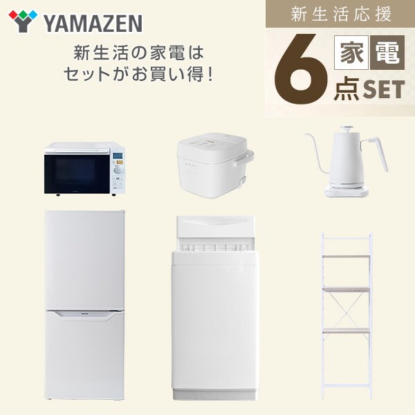 新生活家電セット 6点セット 一人暮らし (6kg洗濯機 106L冷蔵庫 オーブンレンジ 炊飯器 温調ケトル 家電収納ラック) ひとり暮らし 単身赴任新 学生 入学 おすすめ 山善 YAMAZEN【送料無料】