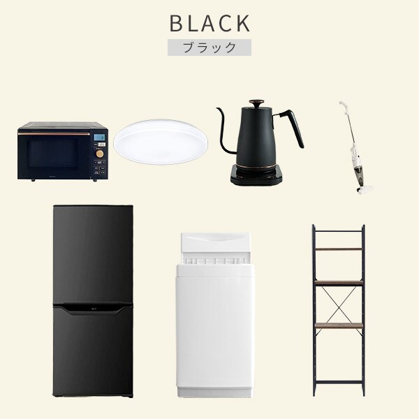 | 商品説明 | 【洗濯機】 ●容量:6.0kg(洗濯時)、1.5kg(風乾燥時) ●8つのコース搭載(標準・毛布・おいそぎ・ドライ・ソフト・つけおき・部屋干し・槽洗浄) 【冷蔵庫】 ●容量:106L(冷蔵室73L/冷凍室33L) ●年間消費電力量:268kWh/年(50Hz/60Hz) 【オーブンレンジ】 ●容量18L、フラットテーブル ●高周波出力:650W(60Hzのみ)/500W/200W相当 【シーリングライト】 ●全光束:3600lm ●30分、60分OFFタイマー付き 【電気温調ケトル】 ●容量:800ml ●温度設定範囲:60-100度の間で1度単位で温度調整可能 【クリーナー】 ●スティック&ハンディの2WAY ●吸込仕事率:40W 【家電収納ラック】 ●棚やコンセントの高さを、モノに合わせて変更可能 ●2口コンセント付き(計1500Wまで)でよく使う家電や雑貨をすっきりひとまとめ ●ラック以外メーカー保証:1年間 |
