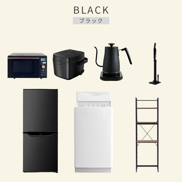 【新生活応援セット】 家電セット 一人暮らし 新生活家電 7点セット 新品 ( 6kg洗濯機 106L冷蔵庫 オーブンレンジ 炊飯器 温調ケトル 軽量クリーナー 家電収納ラック )