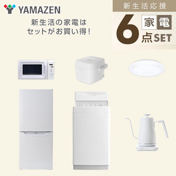 | 山善 YAMAZEN 【新生活応援セット】 家電セット 一人暮らし 新生活家電 6点セット 新品 ( 6kg洗濯機 106L冷蔵庫 電子レンジ 炊飯器 シーリングライト 温調ケトル ) |