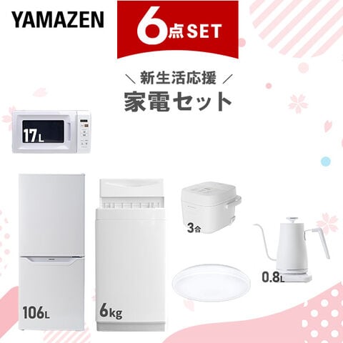 新生活家電セット 6点セット 一人暮らし (6kg洗濯機 106L冷蔵庫 電子レンジ 炊飯器 シーリングライト 温調ケトル) ひとり暮らし 単身赴任新 学生 入学 おすすめ 山善 YAMAZEN【送料無料】