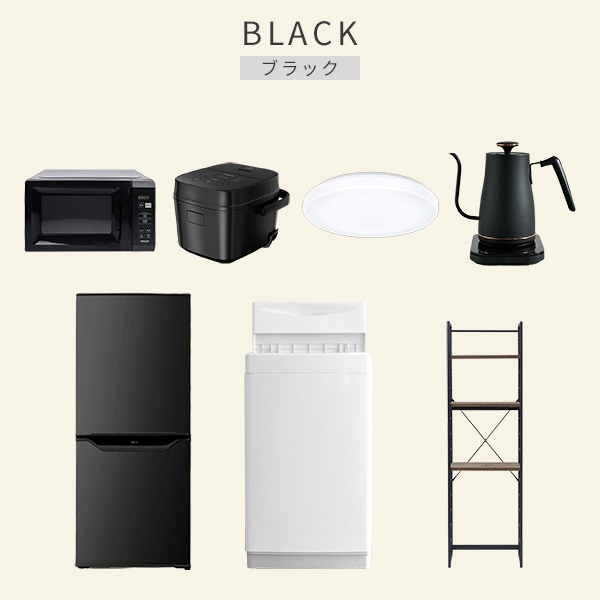 【新生活応援セット】 家電セット 一人暮らし 新生活家電 7点セット 新品 ( 6kg洗濯機 106L冷蔵庫 電子レンジ 炊飯器 シーリングライト 温調ケトル 家電収納ラック )
