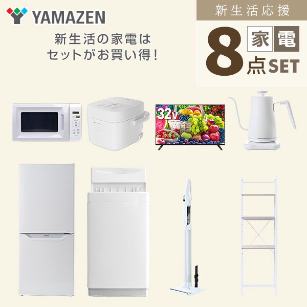 新生活家電セット 8点セット 一人暮らし (6kg洗濯機 106L冷蔵庫 電子レンジ 炊飯器 32型液晶テレビ 温調ケトル 軽量クリーナー 家電収納ラック) ひとり暮らし 単身赴任新 学生 入学 おすすめ 山善 YAMAZEN【送料無料】